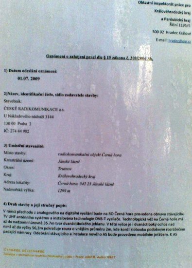 Krkonoše 2010, aneb nový anténní systém vysílače Černá hora