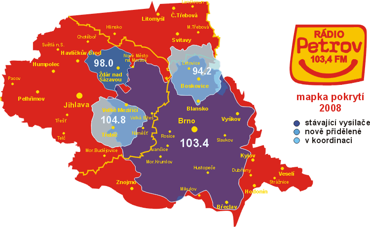 a v koncepci logicky doplní pokrytí vysílačů Vyškov 95.8 MHz a Blansko 97.7 MHz.