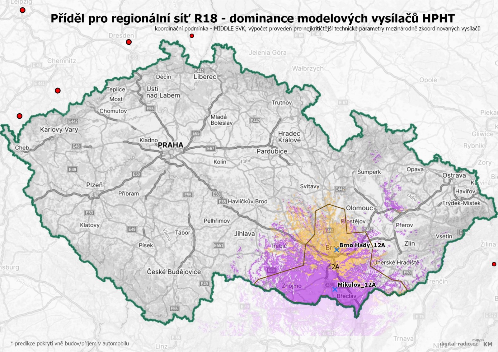 Mít pro Jihomoravský kraj jiný kanál by bylo fajn, ale ve vzduchu bude viset otázka, jak se k tomu postaví regulátor. Znamenalo by to připustit, že se v daném rajónu zahodí oba frekvenční bloky 9B i 9D. Obdobně by třeba ČRa velmi prospělo využít svojí reginálky k obdarování své celoplošky za účelem lepší regionalizace – v tomto případě nejlépe UL a LI s vyhozením 11B. Zrovna 12A ale pro Jihomoravský kraj není nejšťastnější volbou – do výběrového řízení šel blok s koordinační podmínkou z SK, modelově bez Kojálu a s dalšími omezeními a rizikem nuceného podetnutí v budoucnosti. Z umístění na Javořinu by slovákům evidentně naskákala kopřivka. regionalni-site-dab-dominance-modelovych-vysilacu-9.jpg (1600×1132) Myslím, že stale nejjednodušší bude, když tam to Hitrádio prostě bude ve dvou mutacích. Jinak Javořina a podobné lokality je fajn na rozjezd sítě, ale s kmitočtováním, které má ve vínku RTI se bude muset časem dolů na spoustu menších lokalit. Javořina takhle „cáká“ hnedle do třech rajónů. 004418e4d389fda695cbecd9d48a2149_0.png (1200×1200) Dneska takhle z BundesnetzAgentur.de přišla pro RTI lokalita Broadcast Services OSTRAVA LANOVA. Přátelství operátorů by se tak v blízké době mohlo přenést i na jižní Moravu… 😉