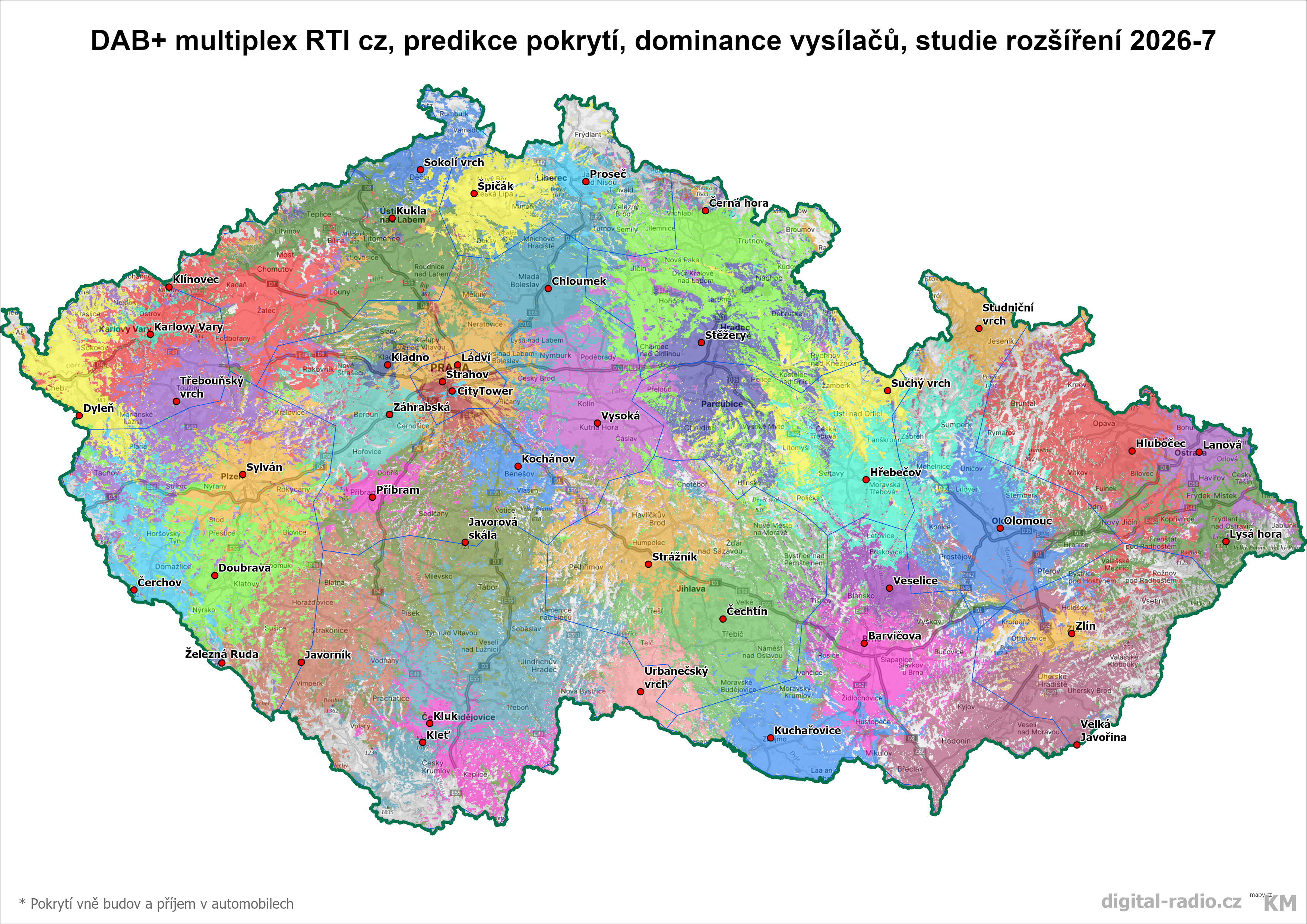 Ve středočeské oblasti na východ od Prahy kolem D11 se z multiplexu CRA DAB+ CZ uplatňují převážně mutace 1 (reálně bez čísla), 2 a 5, tedy kombinace Žižkov + Černá hora, Ještěd + Buková hora a Krásné. U něj překvapuje stabilní signál až k okraji Prahy. Také ostatní mutace mají poměrně silný příjem, takže k přelaďování moc často nedochází a když manuálně některé číslo zvolím, obvykle hraje na dlouhých úsecích.